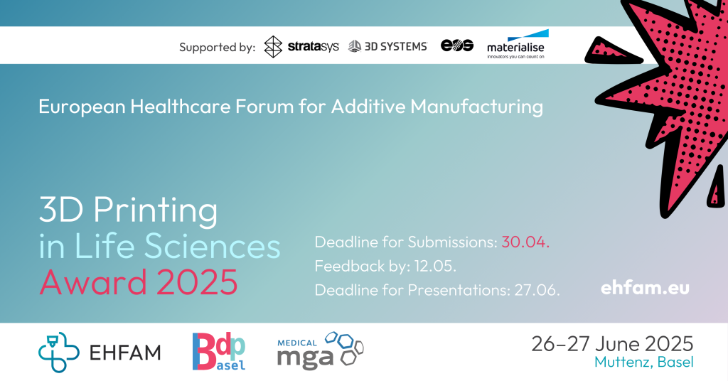 Together with our partners, MGA Medical is proud to once again co-host the “3D Printing in Life Sciences Pitch Contest” as part of EHFAM 2025.